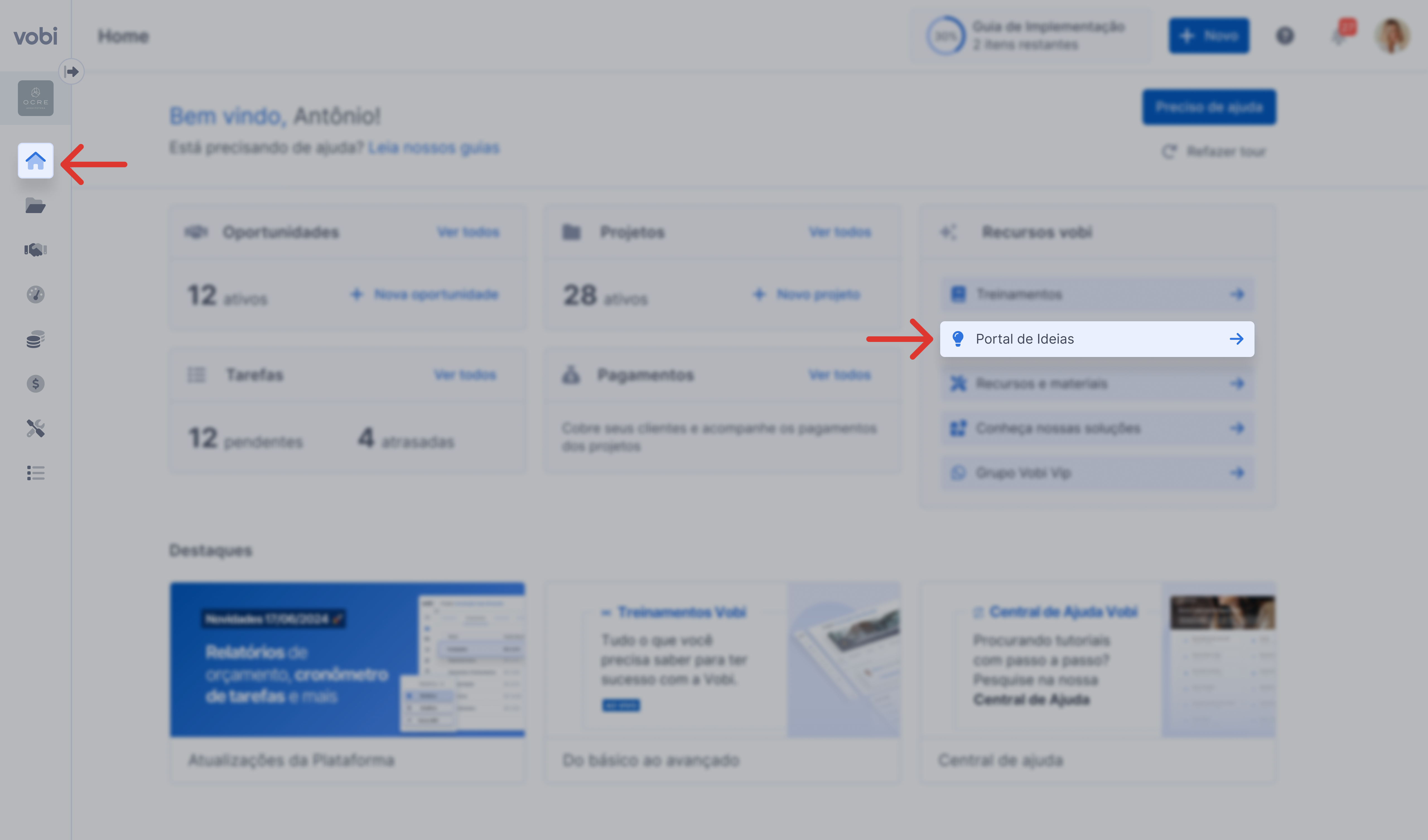 Tem alguma sugestão de melhoria na plataforma Vobi? Seu primeiro passo vai ser acessar o Portal de Ideias e procurar se alguém já deu essa sugestão.