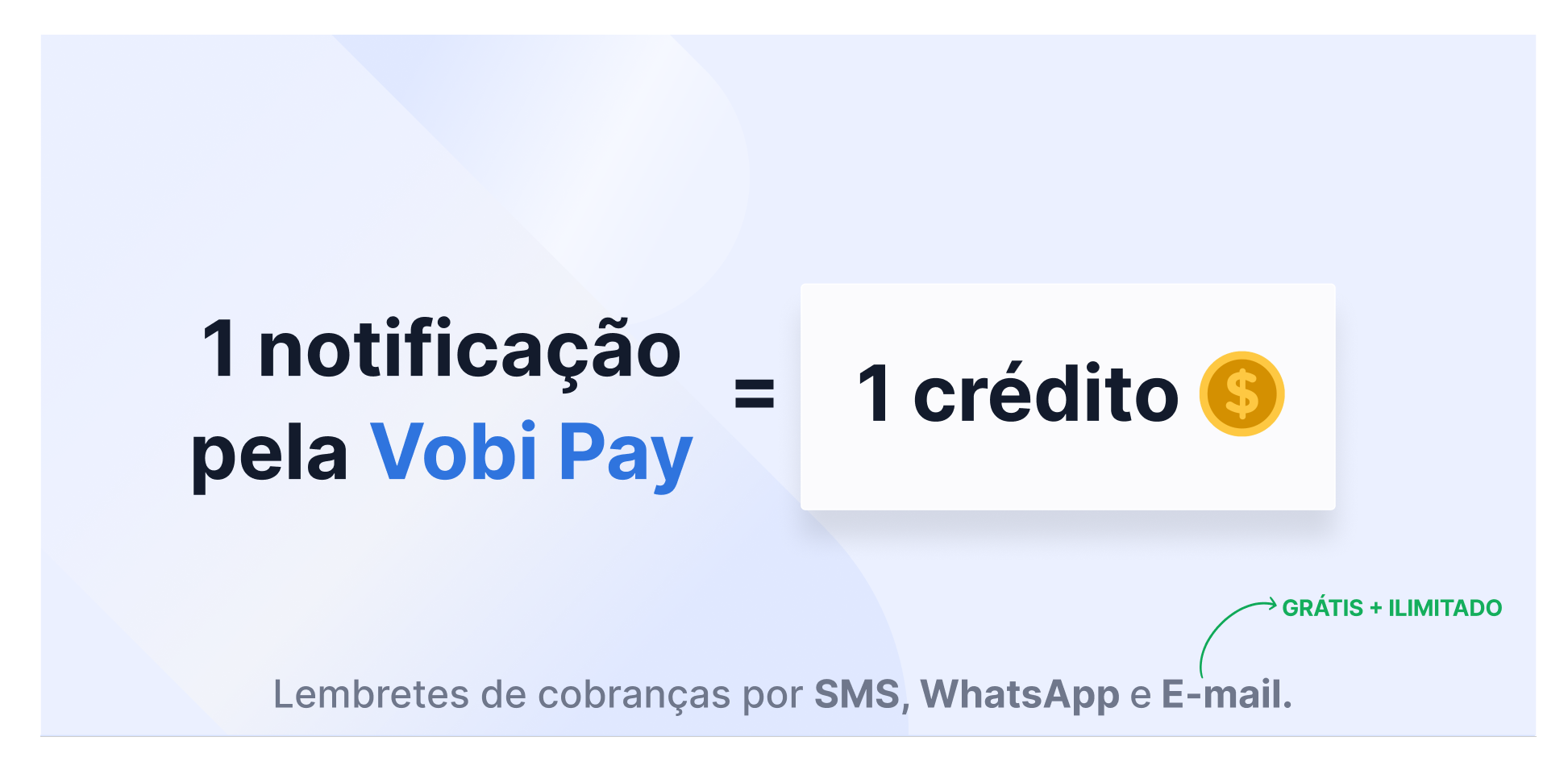O envio de e-mails de cobrança é ilimitado e totalmente gratuito! Já para utilizar o envio de cobranças através de SMS e WhatsApp, cada mensagem consome 1 crédito de notificação que você precisa ter na sua conta.