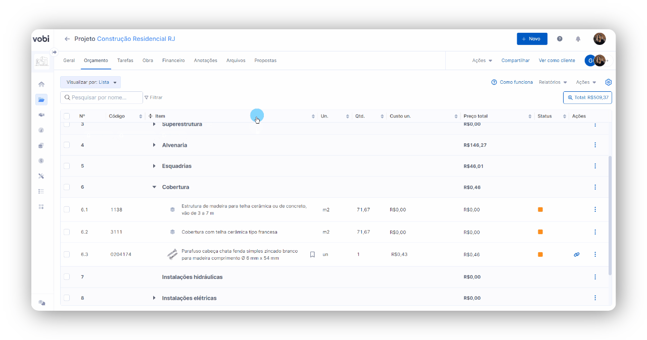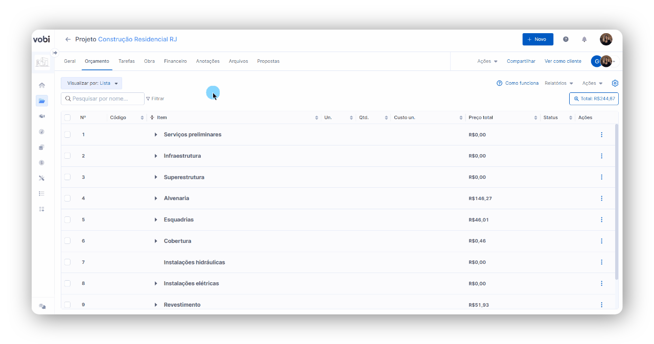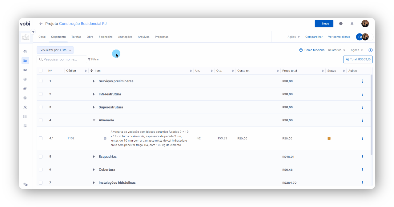 Agora, quando se trata das informações do orçamento, essas são personalizáveis para atender às necessidades únicas de cada projeto. O melhor de tudo é que você pode fazer essas personalizações de acordo com o que for necessário para esse projeto em específico, sem afetar outros itens desse mesmo orçamento e também de outros projetos que utilizem o mesmo item em seus orçamentos.