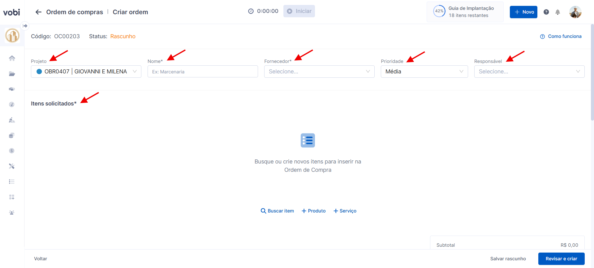 Criar uma Ordem de Compras e Contratações com a Vobi é incrivelmente fácil! Veja todo o passo a passo a seguir