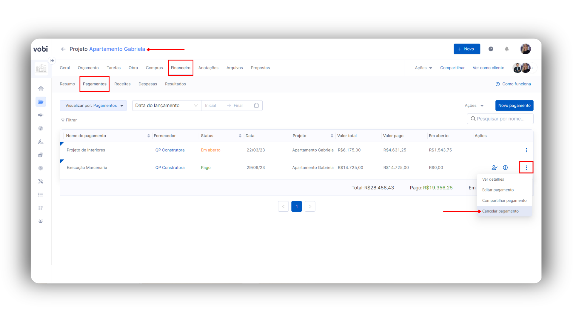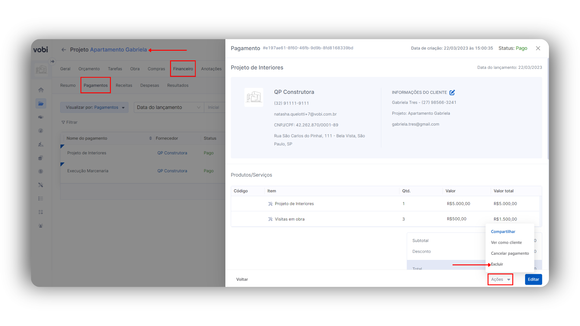 Acessar o financeiro > pagamentos desse projeto