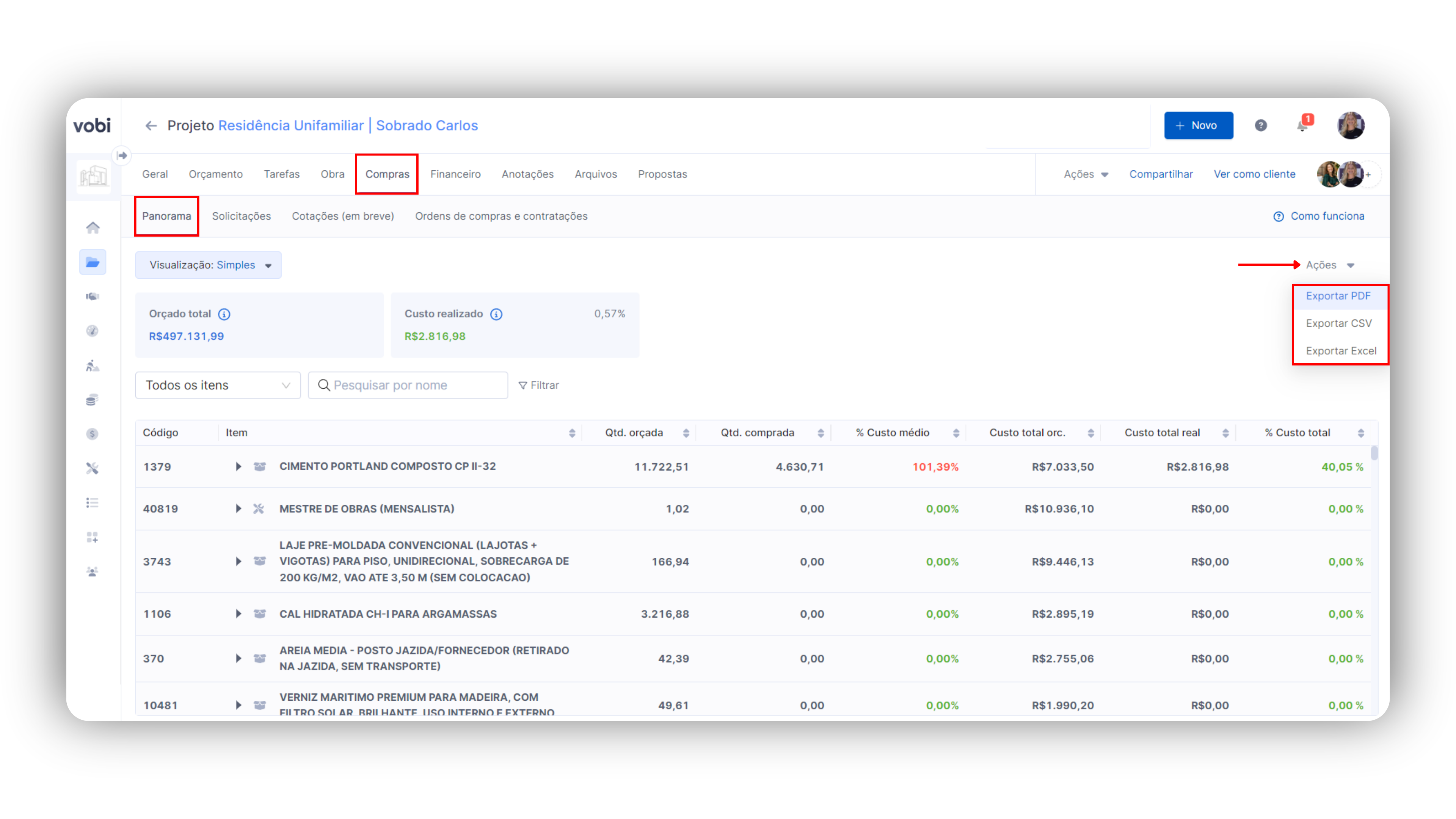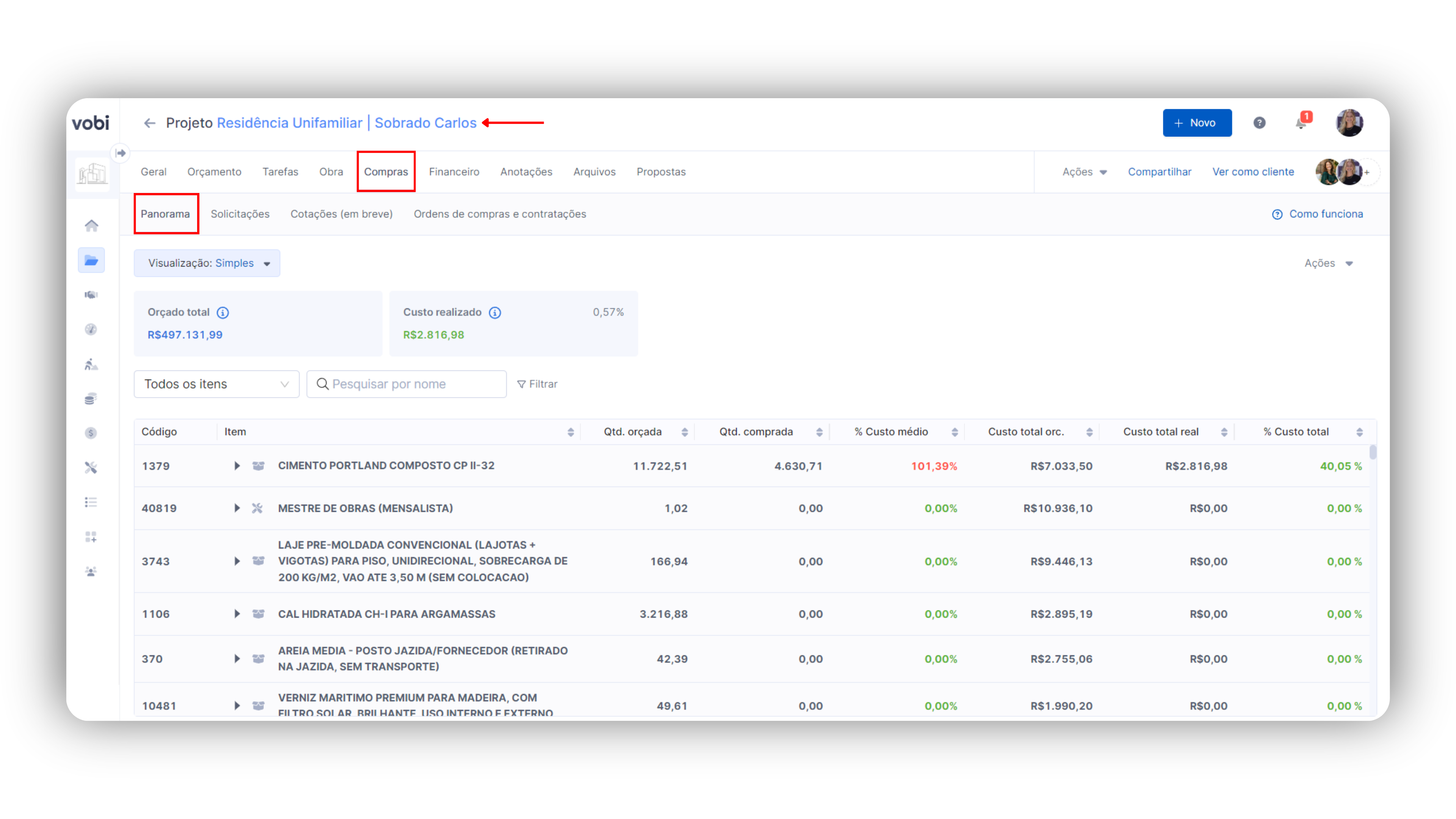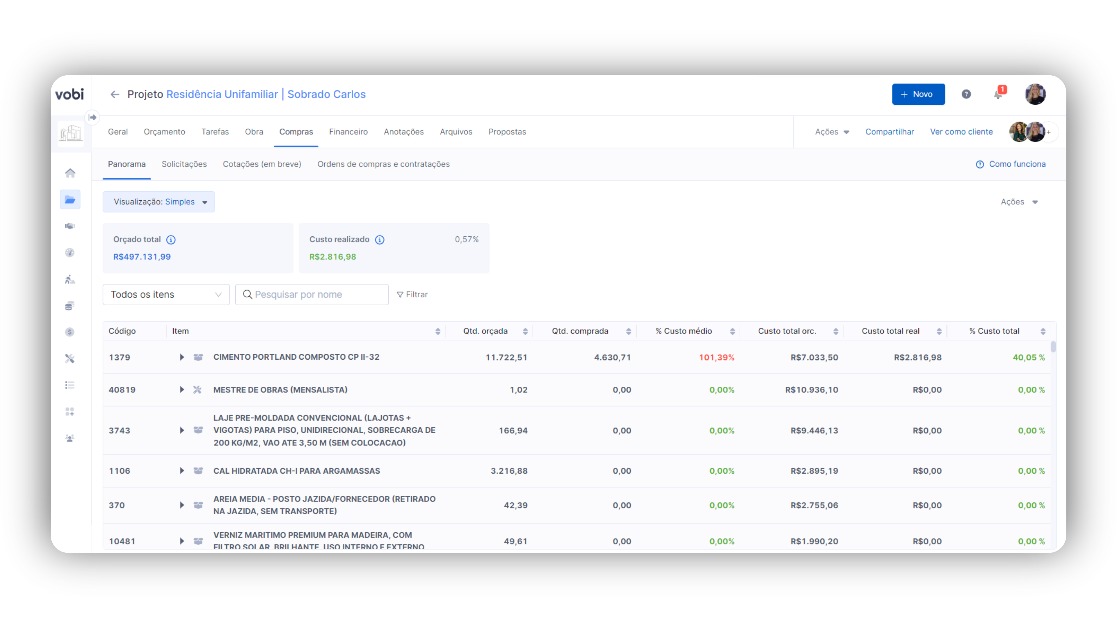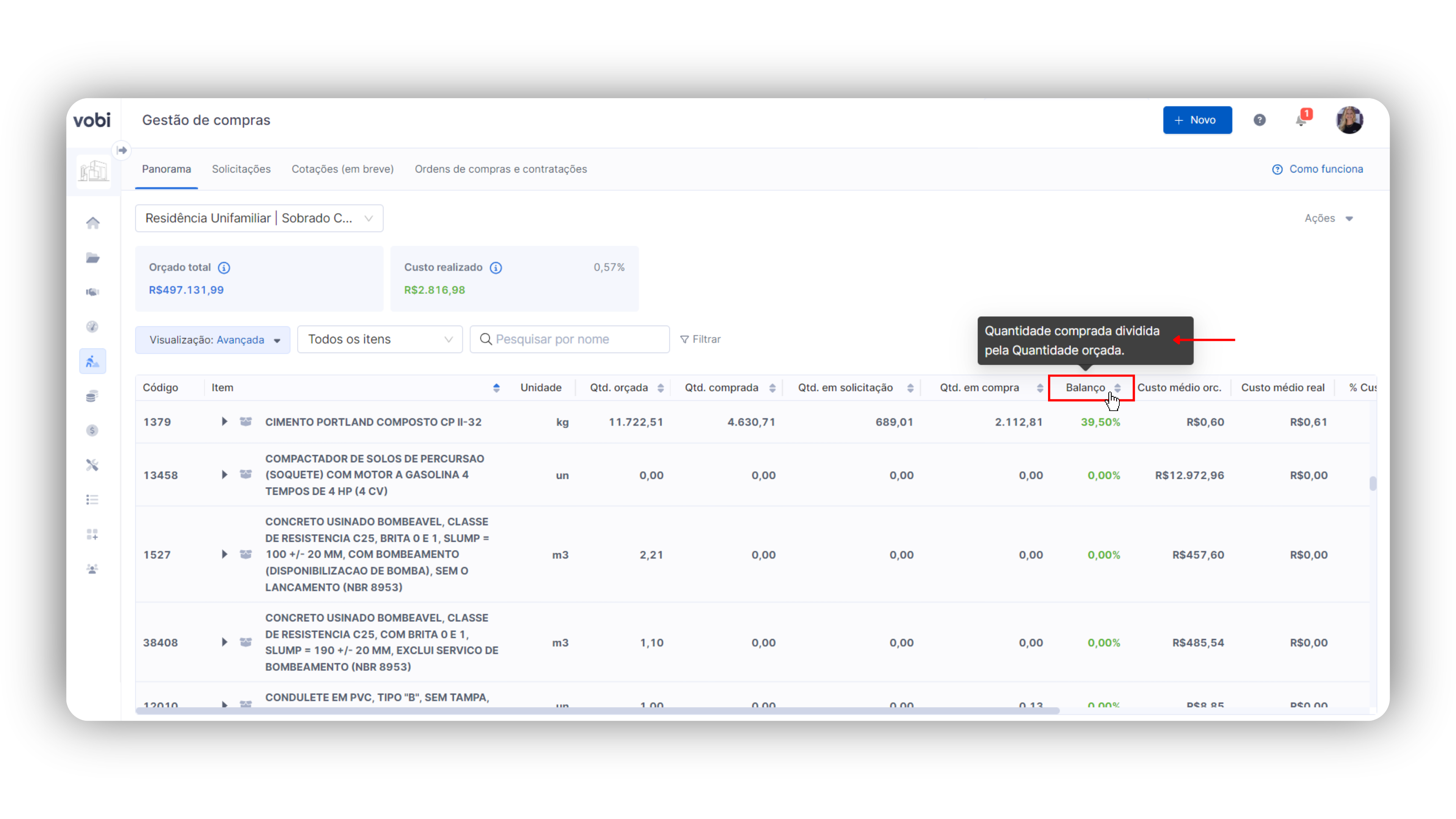 Portanto, o uso do Panorama de Compras na Vobi é crucial para assegurar que as obras do seu negócio sejam finalizadas no tempo planejado e dentro do orçamento estabelecido, mantendo alta qualidade e conformidade.