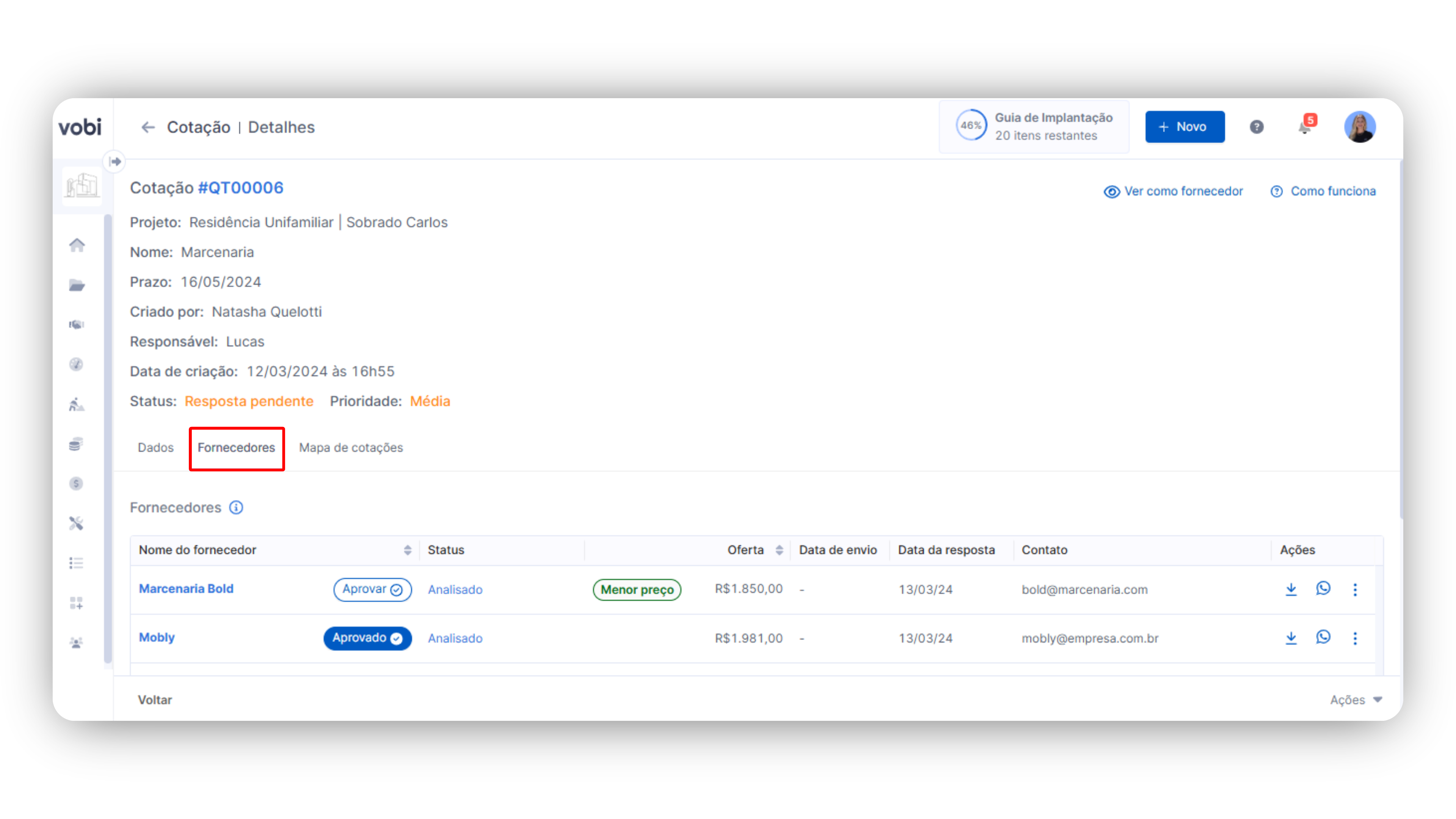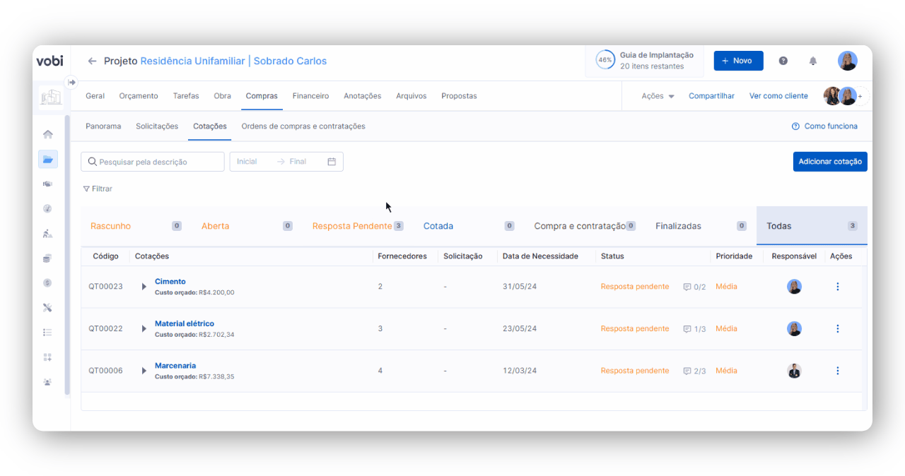 Portanto, a ferramenta de Cotações da Vobi torna-se crucial, otimizando a seleção, simplificando análises de custos e impulsionando o sucesso e rentabilidade nos empreendimentos.