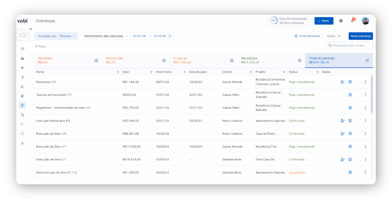 Essas configurações serão sugeridas quando você criar uma nova cobrança via vobi pay! Agora, vamos ver como você poderá fazer alterações em algumas cobranças que terão valores diferentes.