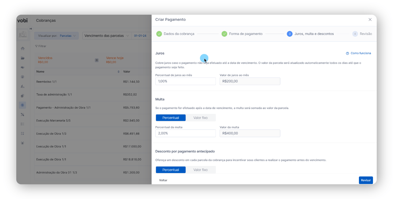 Como configurar os juros, multas e descontos na Vobi Pay?