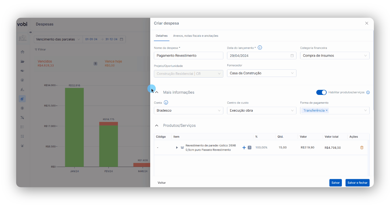 Você pode armazenar as notas fiscais em pagamentos, receitas ou despesas cadastradas na plataforma Vobi. Isso pode ser feito durante a criação desse lançamento financeiro ou após isso, você poderá incluir o documento fiscal relacionado a ele através da função de Edição.