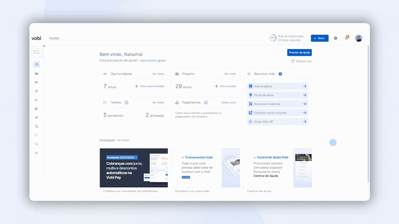 Para começar a utilizar agora mesmo, basta acessar a sua conta na Vobi!
