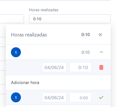 Você encontrará o tempo cronometrado adicionado automaticamente dentro do campo "Horas realizadas".