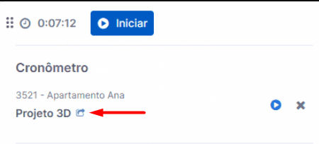 3. Depois de selecionar a tarefa, inicie a contagem de horas clicando em iniciar.