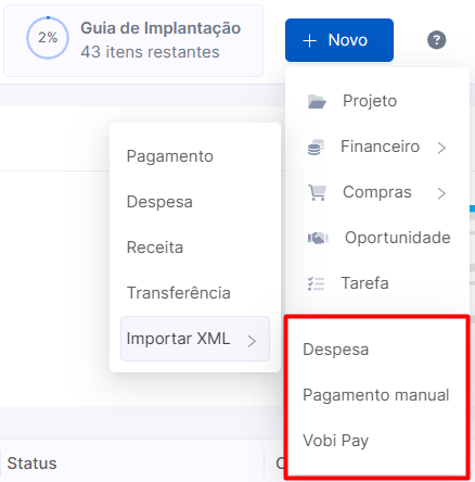 Você poderá realizar a importação do XML antes ou depois de criar o lançamento financeiro.