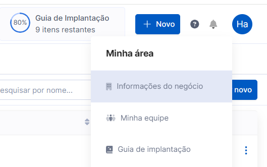 Informações da minha empresa podem ser acessadas na Minha área em Informações do negócio.